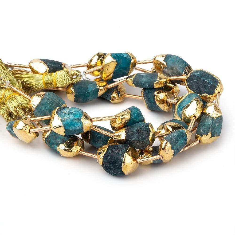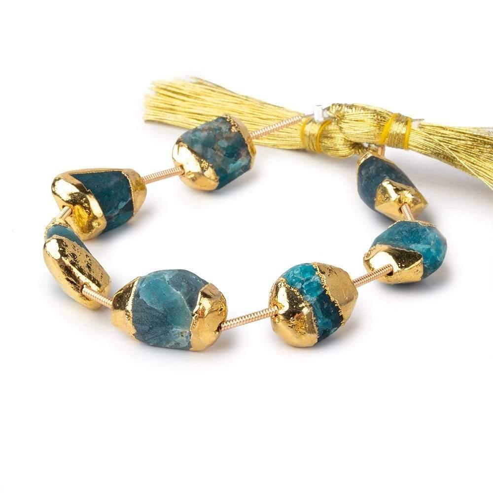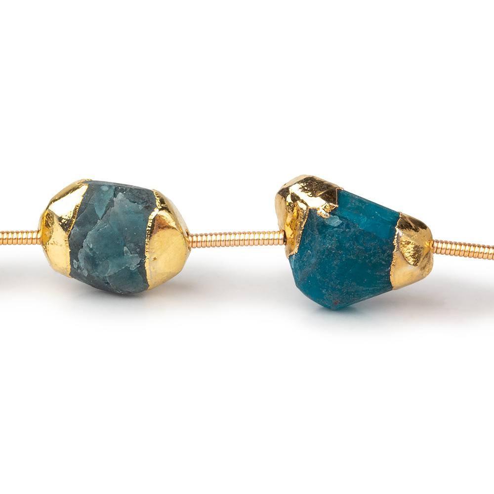 Gold Leafed Neon Apatite exhibits a frosted or matte luster on these semi-translucent, plain nugget beads which have been gold leafed then straight drilled to show natural features on this beautiful deeply saturated blue bead.