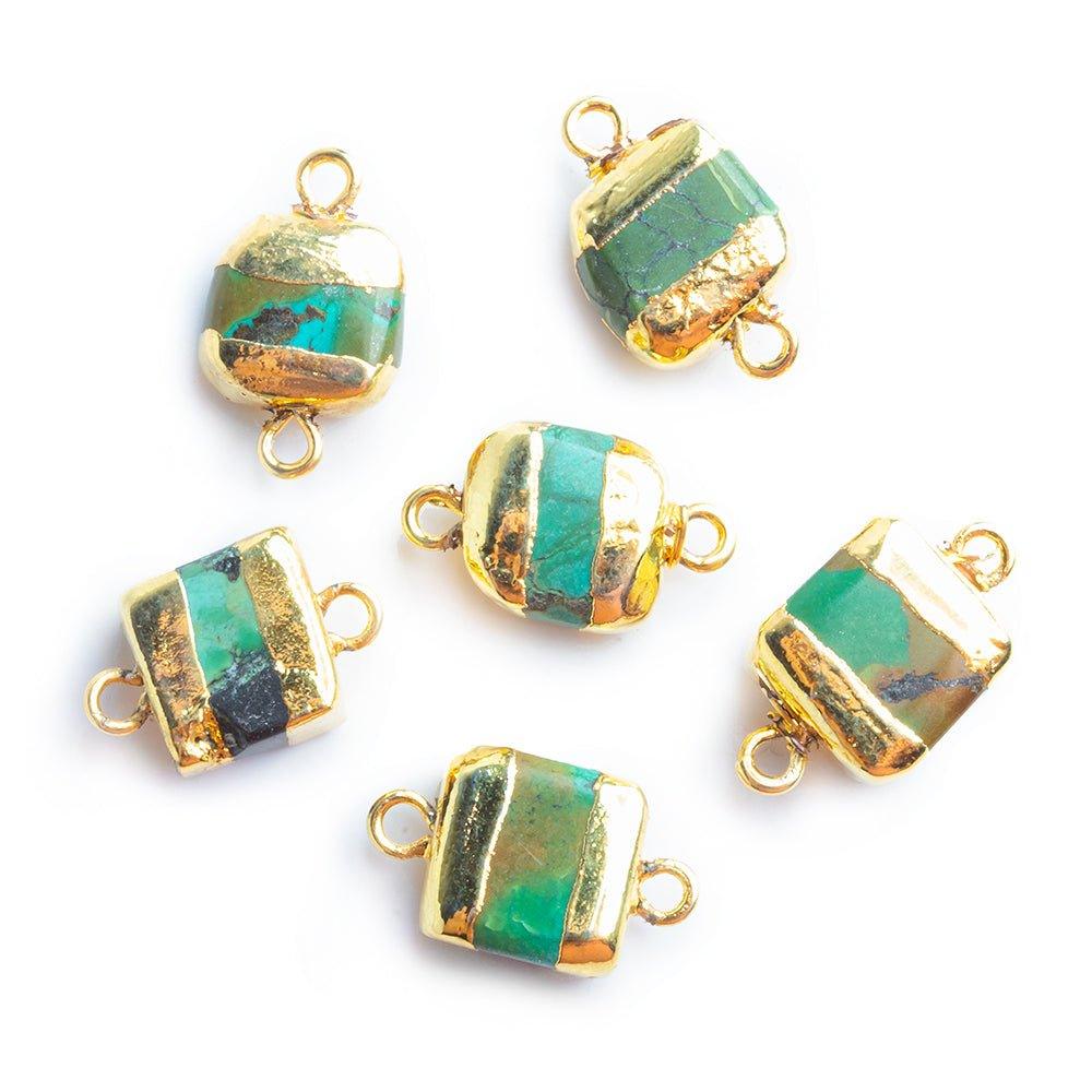 Enhance your jewelry with our Gold Leafed Chinese Turquoise Rectangle Connector. Made with natural hubei turquoise, this one piece per bag is perfect for adding a unique touch to your designs. The gold leaf detail adds a luxurious touch, elevating your jewelry to the next level.