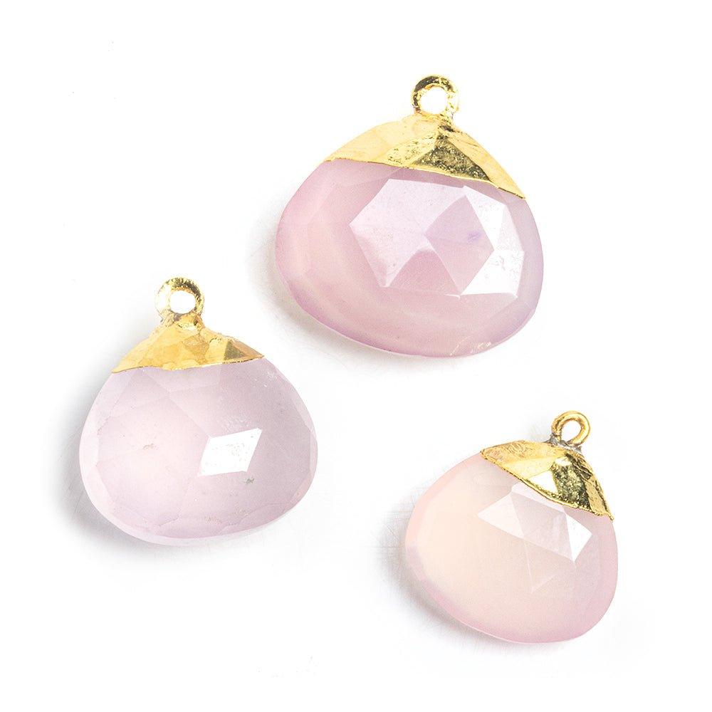 Gold Leafed Pink Chalcedony Faceted Heart Pendant 1 Piece