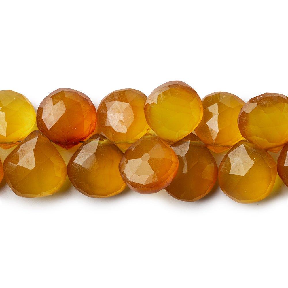 Golden amber Chalcedony faceted hearts 8 inch 42 pieces 10x10mm average. Color treated.