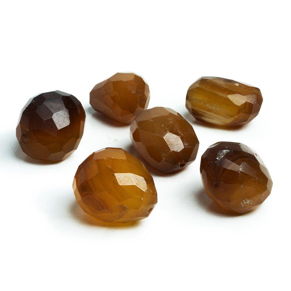 Beads average about 23x19mm. These Chalcedony nuggets have a golden-brown color palette that ranges from warmer reds to pale yellows. Beads are color enhanced.