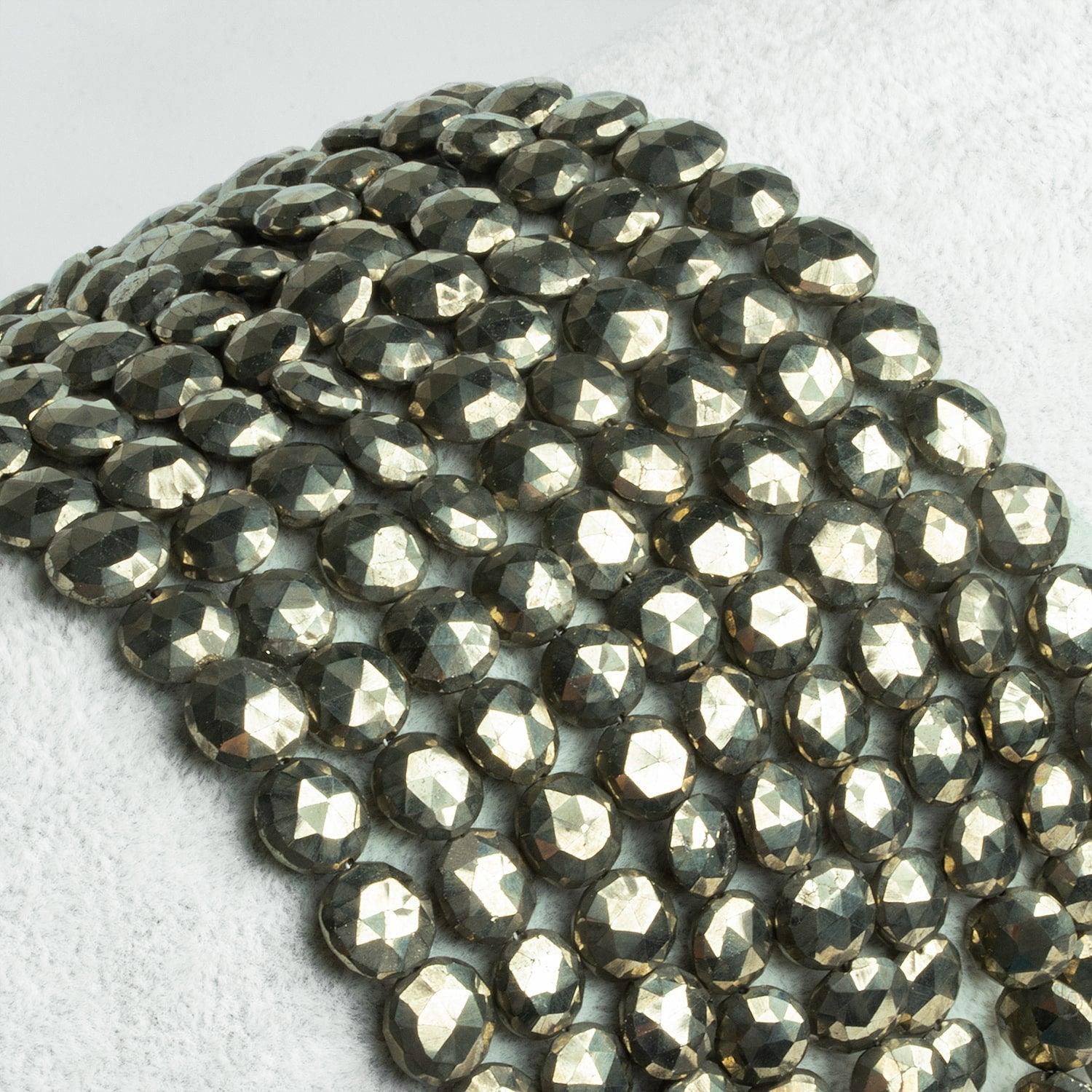 Golden Pyrite Faceted Coin Beads 8 inch 21 pieces