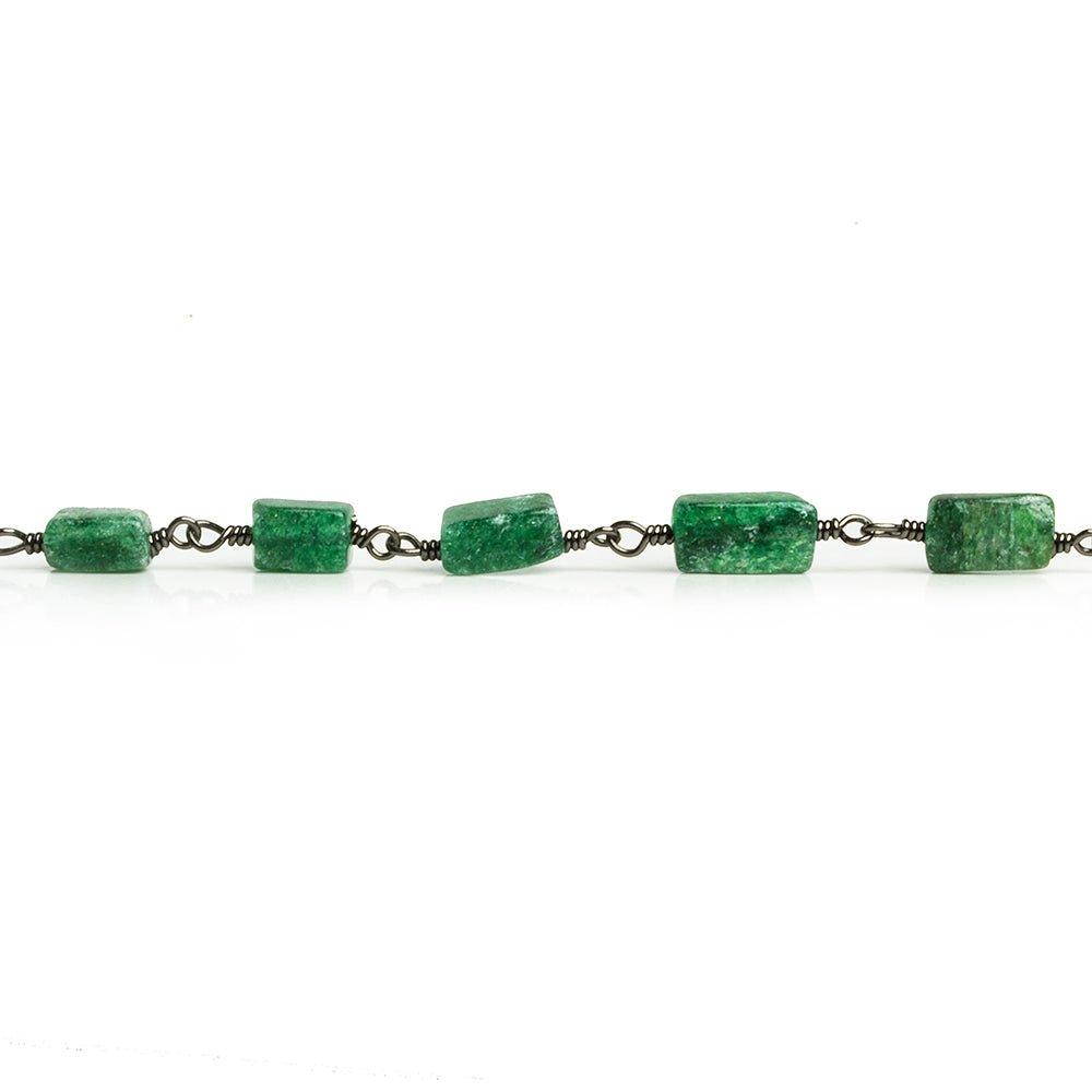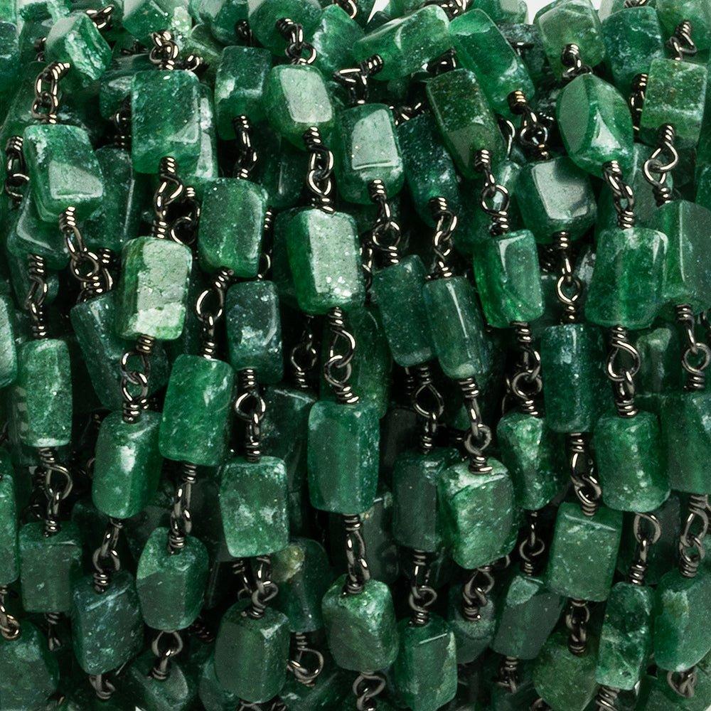 Green Aventurine Rectangles Black Gold Chain 23 pieces