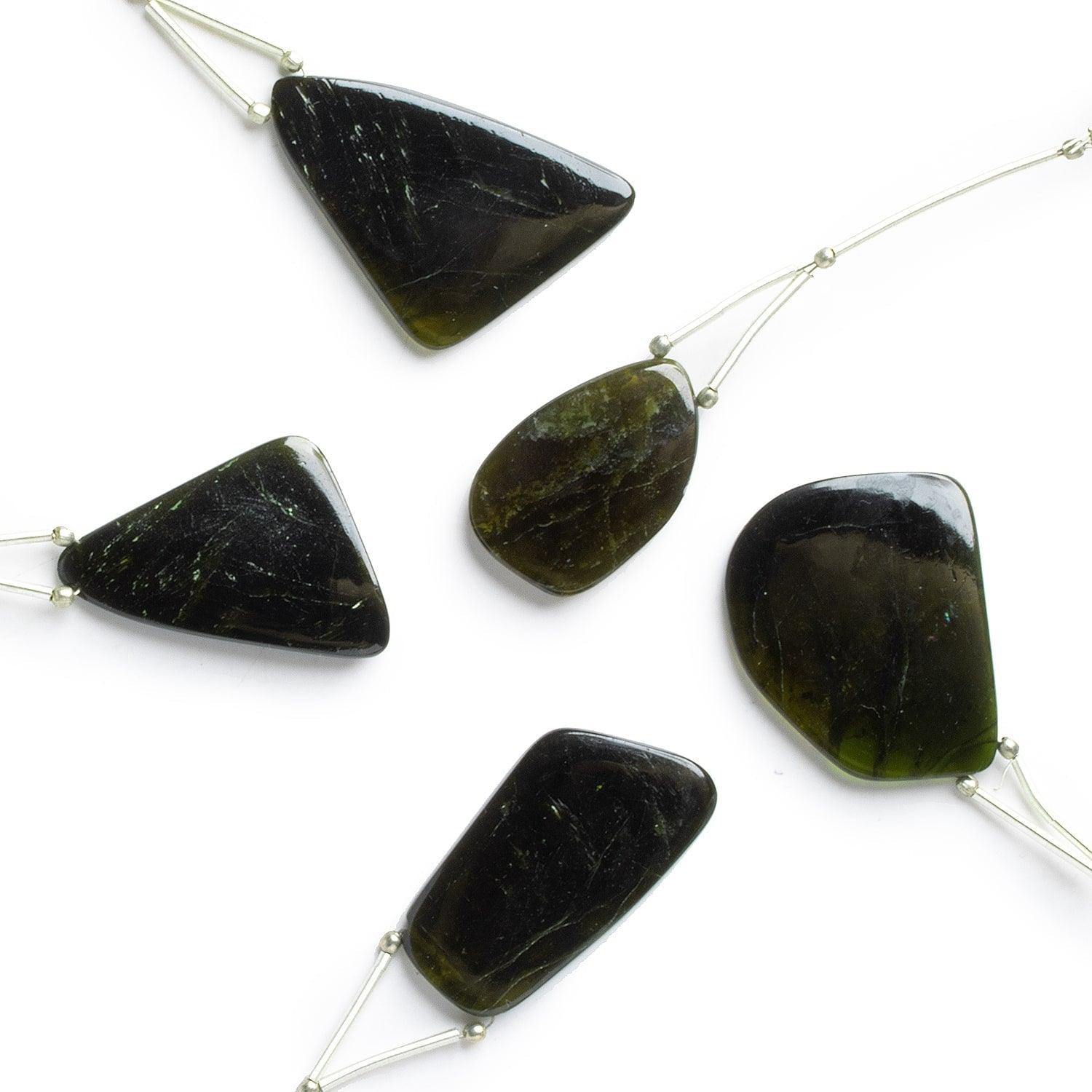 Beads measure about 33x20mm on average. These sizable beads sport very dark translucent bodies in a super-thin shape. Expect a smooth polish along with a rich & vivid color.