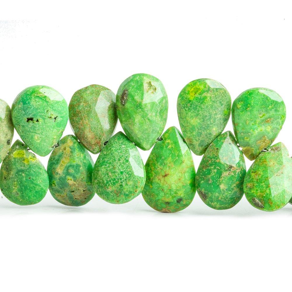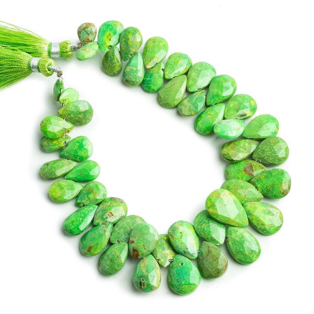 Expertly crafted with a beautiful, enhanced, rich green color, these rare Green Turquoise Faceted Pear Beads are a true gem. The excellent make ensures quality and durability, making them a perfect choice for any jewelry project. Each 8" strand contains 45 pieces of these stunning beads.