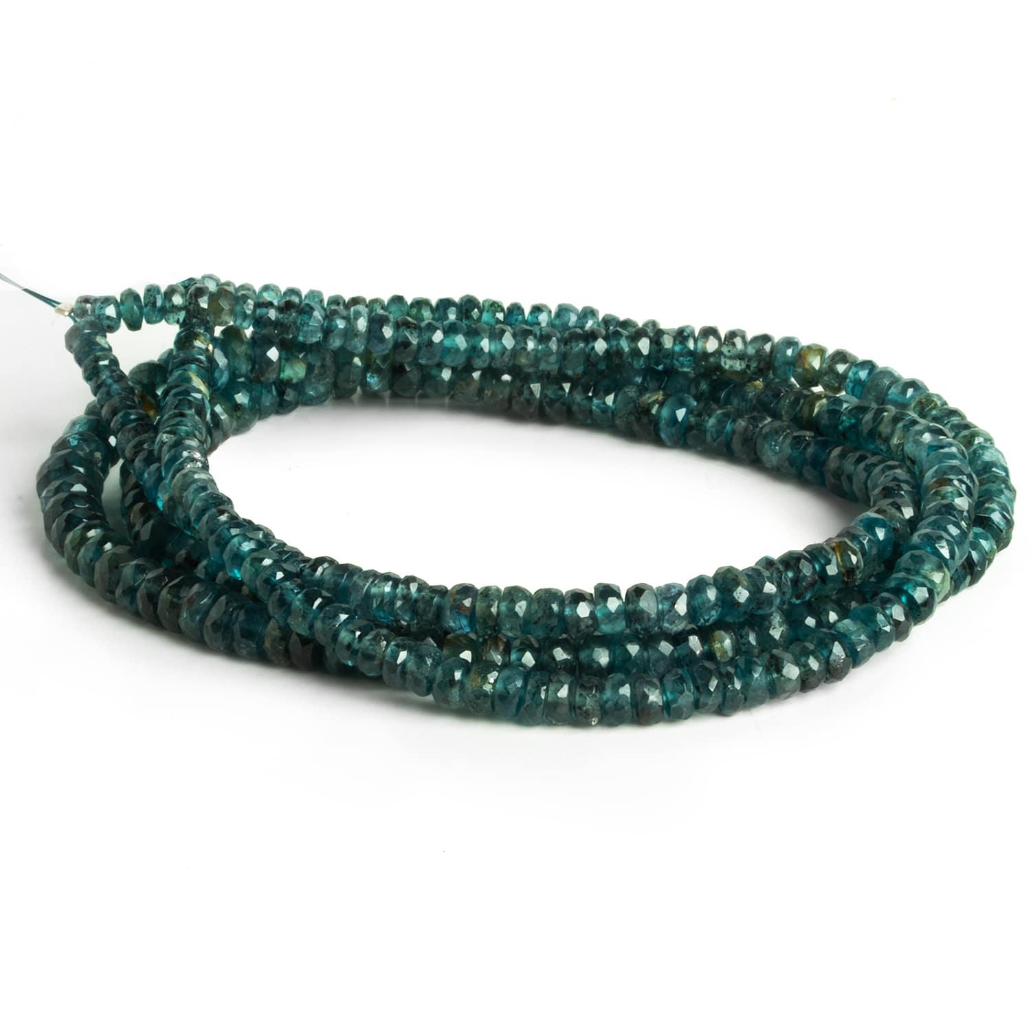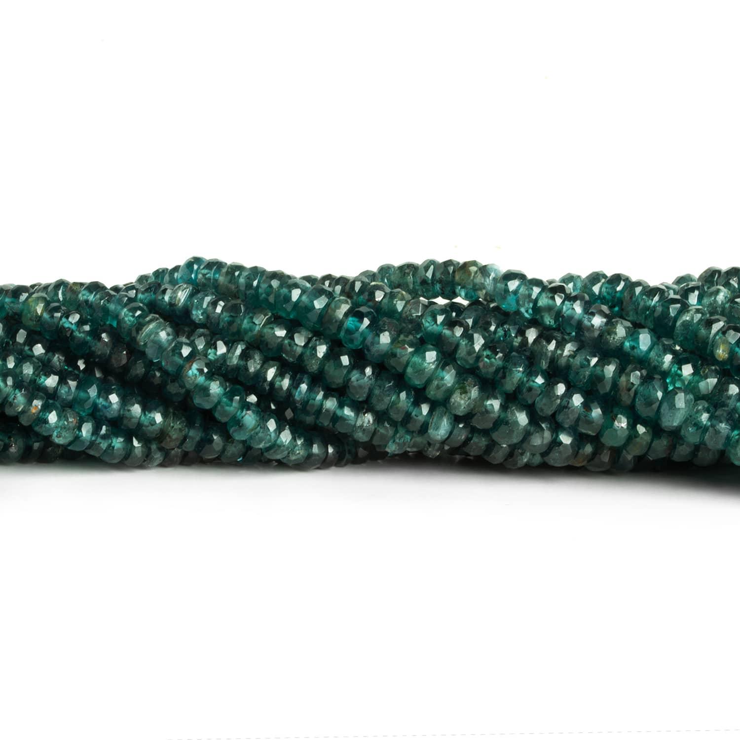 Beads range from about 4mm to 6mm in diameter on a graduated strand. These beads showcase a moderately dark, rich teal blue coloration with beautiful clear bodies. Color palette is generally consistent between and on strands. Expect some minor internal characteristics to be occasionally evident.