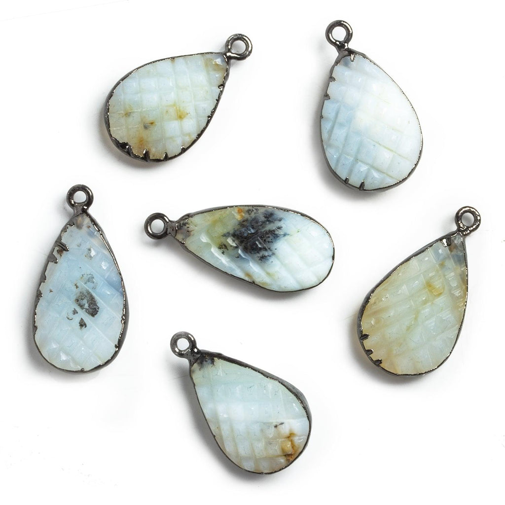 Large Black Gold Leafed Carved Blue Peruvian Opal Pear Pendant