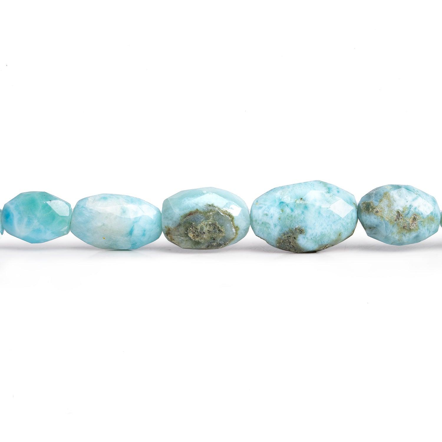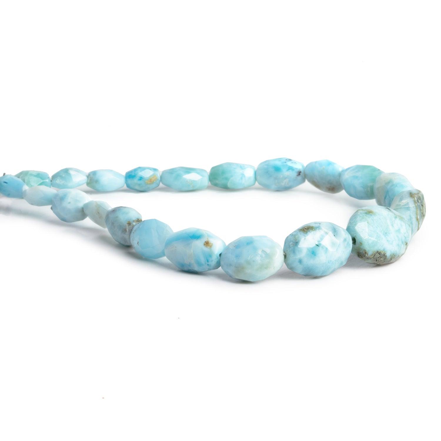 Beads measure about 7x5mm to 16x10mm on a graduated strand. These light colored Larimar beauties show off an elongated oval shape that is somewhat irregular, with a beautiful blue color palette across the strands. Fans of Larimar will love these curated pieces!