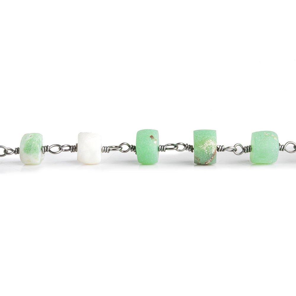 6-7mm Matte Chrysoprase Heshi Black Gold Chain by the Foot 31pcs