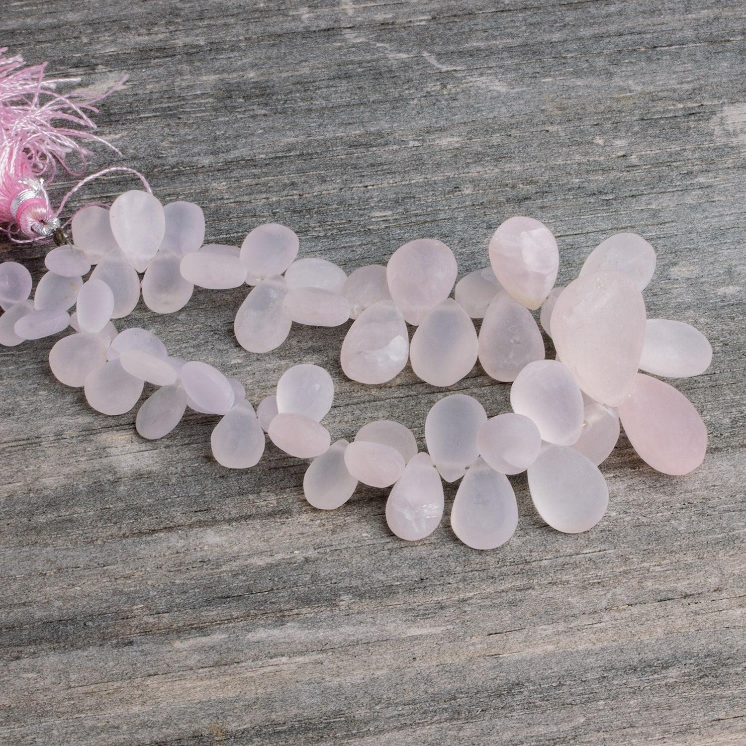 These beads measure about 8x5mm to 18x14mm on graduated strands. Expect a frosty appearance with a pleasant rose quartz pink coloration that is largely consistent across the strand. Fans of this gemstone will love designing with a matte finish on these choice strands of plain pears!