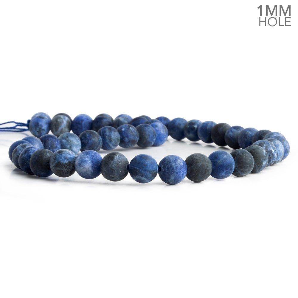 "These 8mm Matte Sodalite Plain Round Beads are crafted from natural gemstone, offering a rich blue color and a large hole with a 1mm drill hole. Perfect for creating unique and stylish jewelry pieces. Each strand measures 15 inches and contains 45 pieces, providing endless possibilities for your designs."
