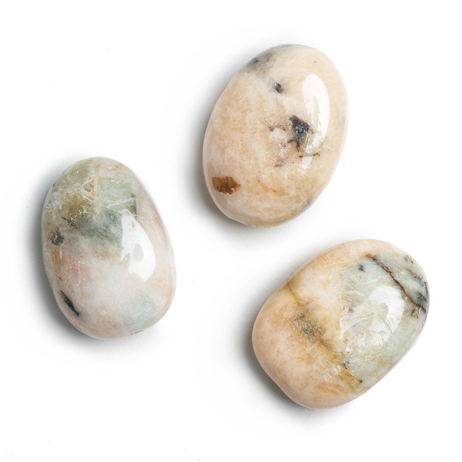 Beads range from about 32x25mm to 37x27mm. These focals have light opaque bodies with hints of pinks, greens and darker elements in oval-like shapes. Expect a degree of internal characteristics and fracturing that contribute to the mesmerizing texture of these marvelous beads. Drill holes are positioned longways straight through the center of the beads.
