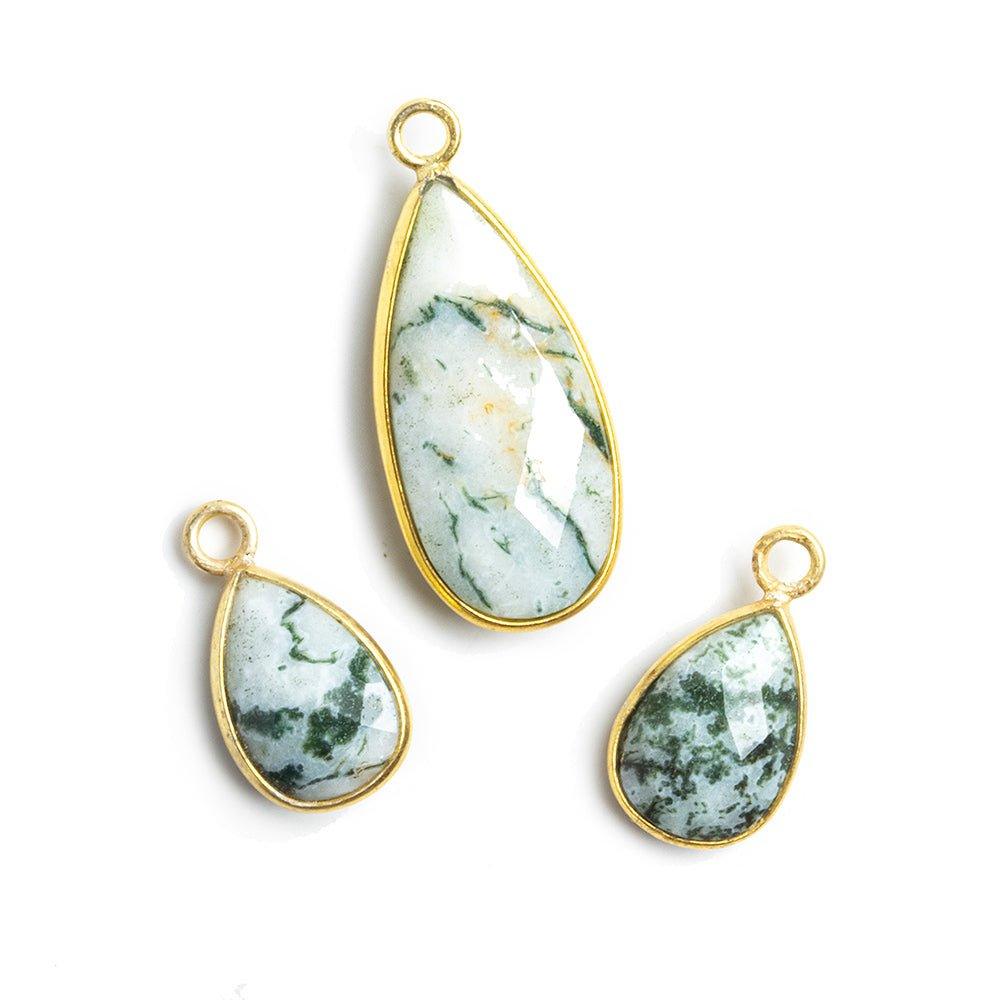 Moss Agate Vermeil Bezeled Pendants - Lot of 3