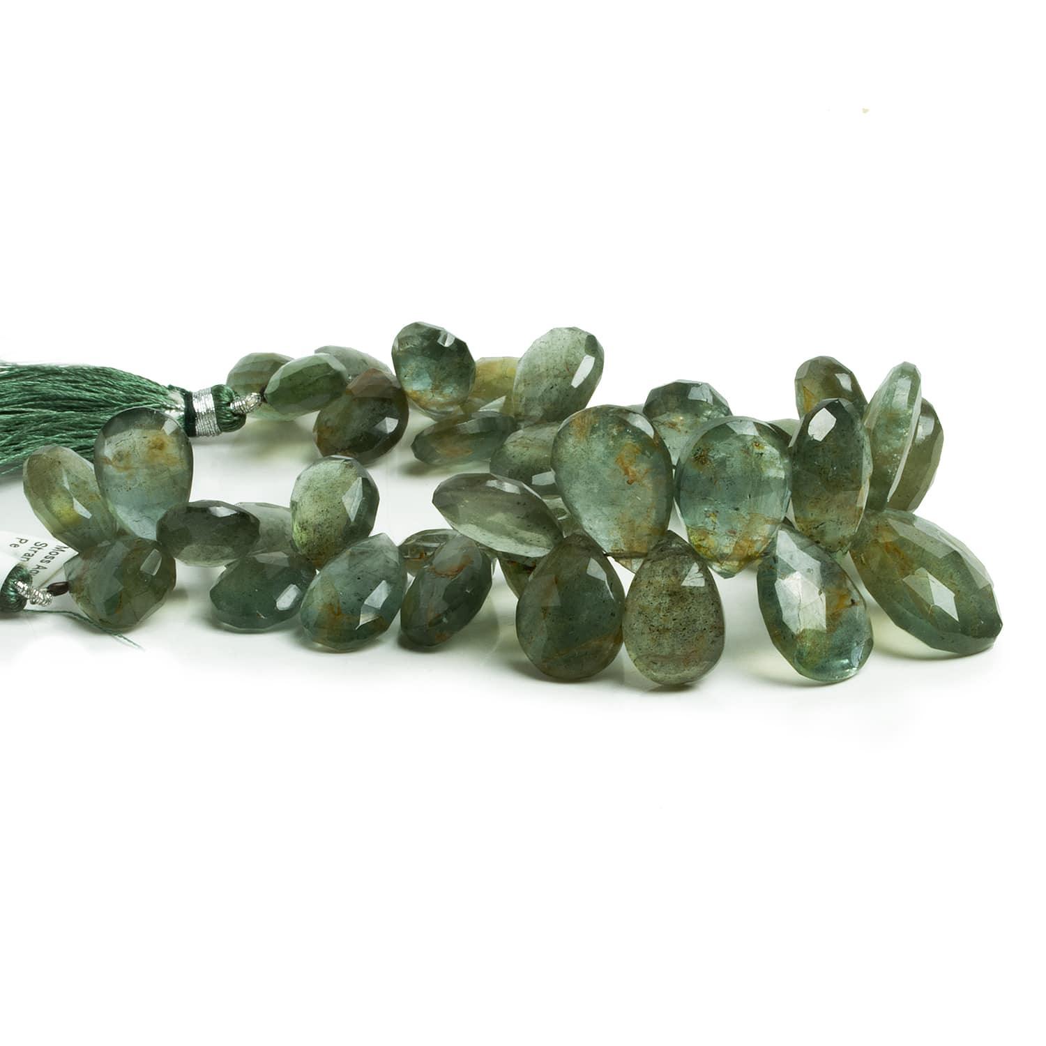 Moss Aquamarine Faceted Pears 8 inch 43 pieces