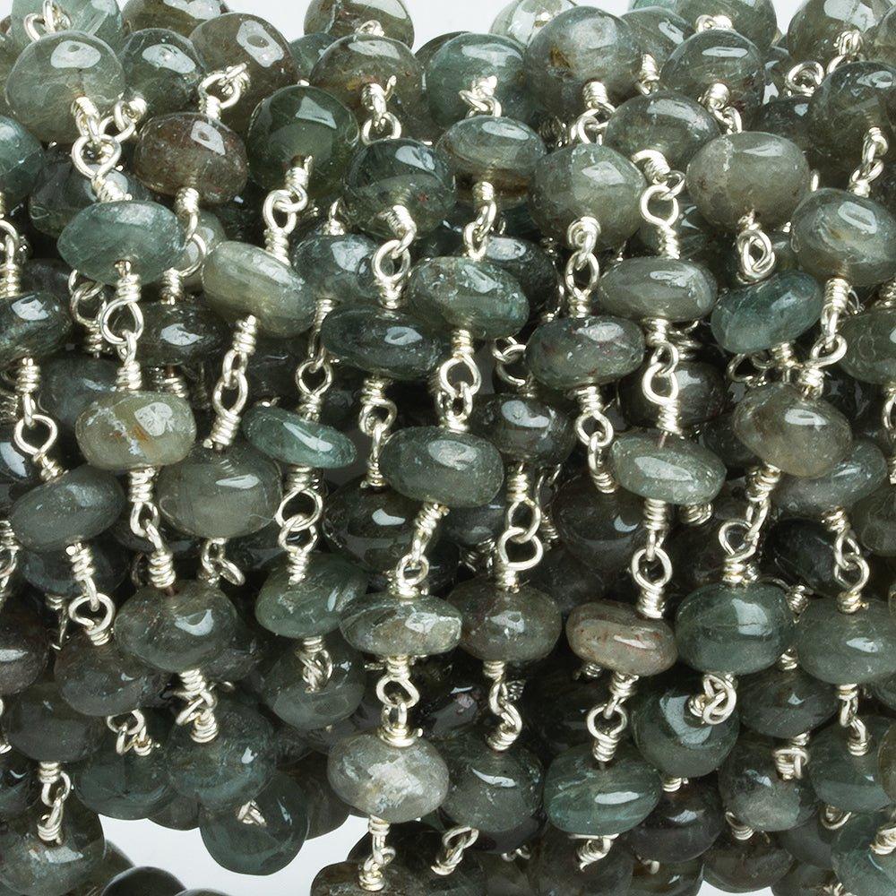 Moss Aquamarine Plain Rondelle Silver Chain 32 pieces