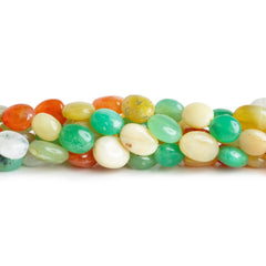 Beads range from about 7mm to 14mm in diameter on a graduated strand. Expect some internal characteristics on this variety of gorgeous gemstones and colors. Enjoy a curated color palette of greenish-yellows, deep greens & and entrancing indigos!