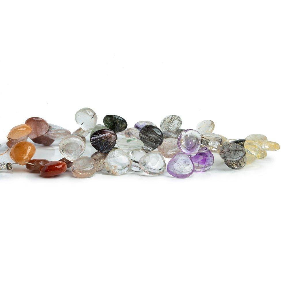 These Multi Gemstone Plain Heart Beads feature a stunning blend of natural gemstones, each cut into a smooth heart shape to highlight the stone’s unique beauty. Measuring approximately 7mm to 9mm, each bead showcases its own array of colors and inclusions, with tones ranging from soft amethyst purples and golden citrine to smoky quartz, tourmalinated quartz, and earthy neutral hues. Their polished surface allows the natural brilliance and texture of the stones to shine, making every strand a one-of-a-kind mix of natural artistry.