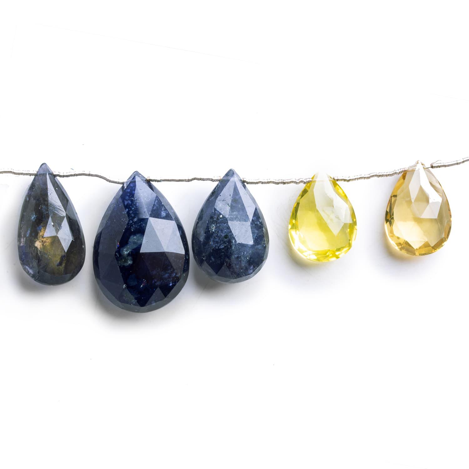 Beads measure about 16x11mm to 27x19mm on a graduated strand featuring a range of gem types. Iolite and Quartz varieties feature prominently on this gorgeous, curated strand of sizable, masterfully faceted pears. Notice very clear Lemon Quartz bodies and ample evident pleochroism in the Iolite as added benefits on this exciting strand!
