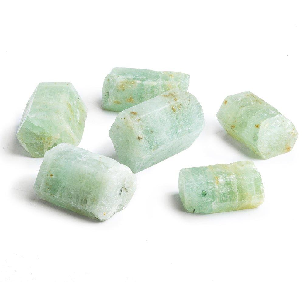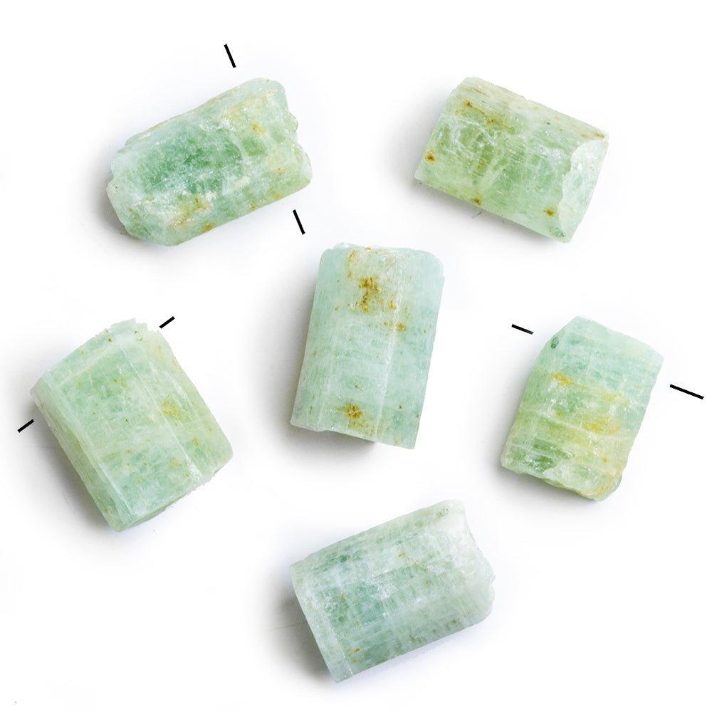 Aquamarine have a semi-transparent quality with moderate internal characteristics including the wonderful hollow tubes common to Aquamarine, the polish is a natural with the hexagonal crystal shape being without man-made faceting of any sort, the body color is an untreated strongly greenish blue and a slightly yellowish green hue, and the crystals are straight drilled to create a larger crystal presentation on this strand of Aquamarine Crystals in their natural state. These gemstones represent the best of this stone whose name means ` the water of the sea` in Latin.
