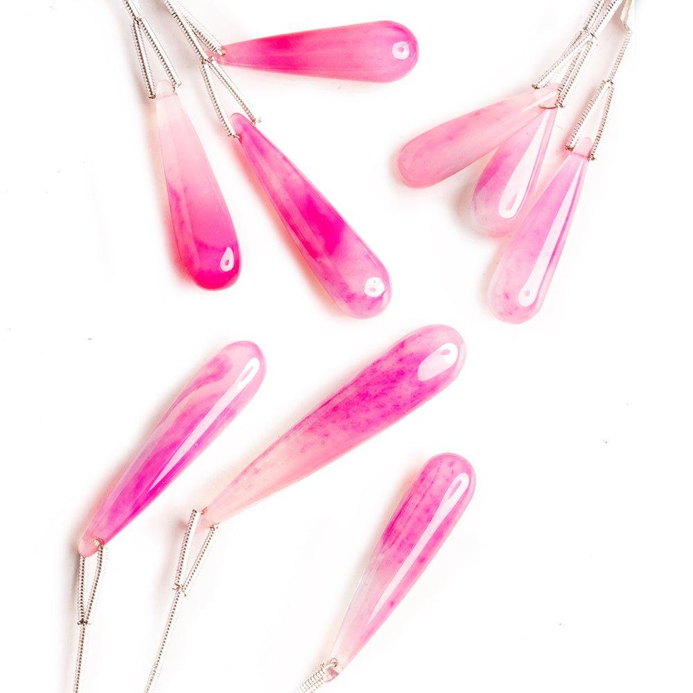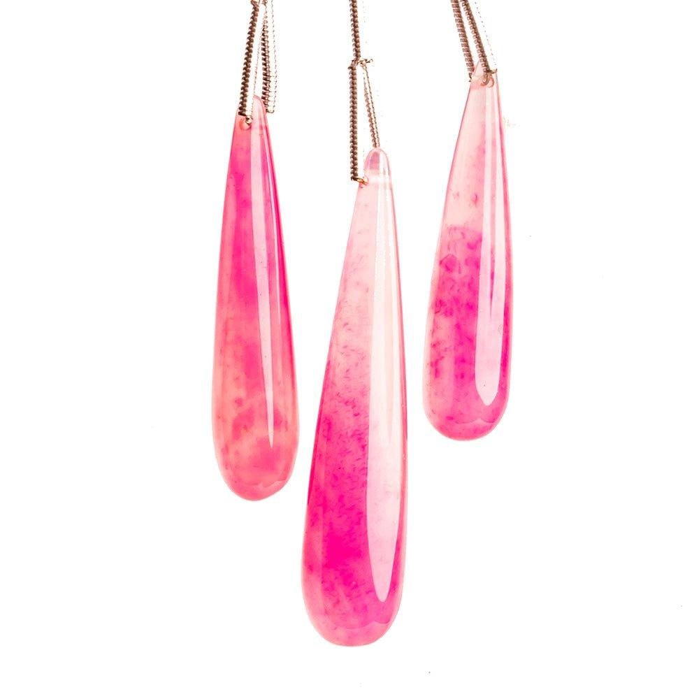 Pink Chalcedony Plain Teardrop Focal Beads Set of 3