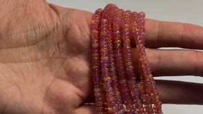 Beads measure about 3mm to 6.5mm in diameter on a graduated strand. These vibrant Raspberry Pink Opals originate from Ethiopia and exhibit strong green & violet fire. These high quality beads are full of color and matched on the strands for a smooth graduation in size.