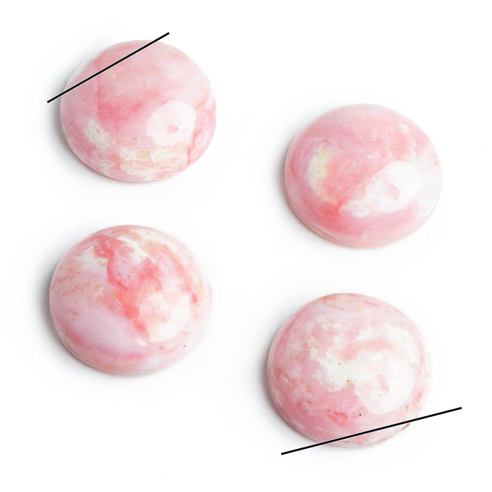 Beads are about 25mm in diameter and are top drilled(location of drill hole shown in third photo). These unique Pink Peruvian Opal pieces have a beautiful pink color that mingles with clouds of white & cream for an eye-catching tableau.