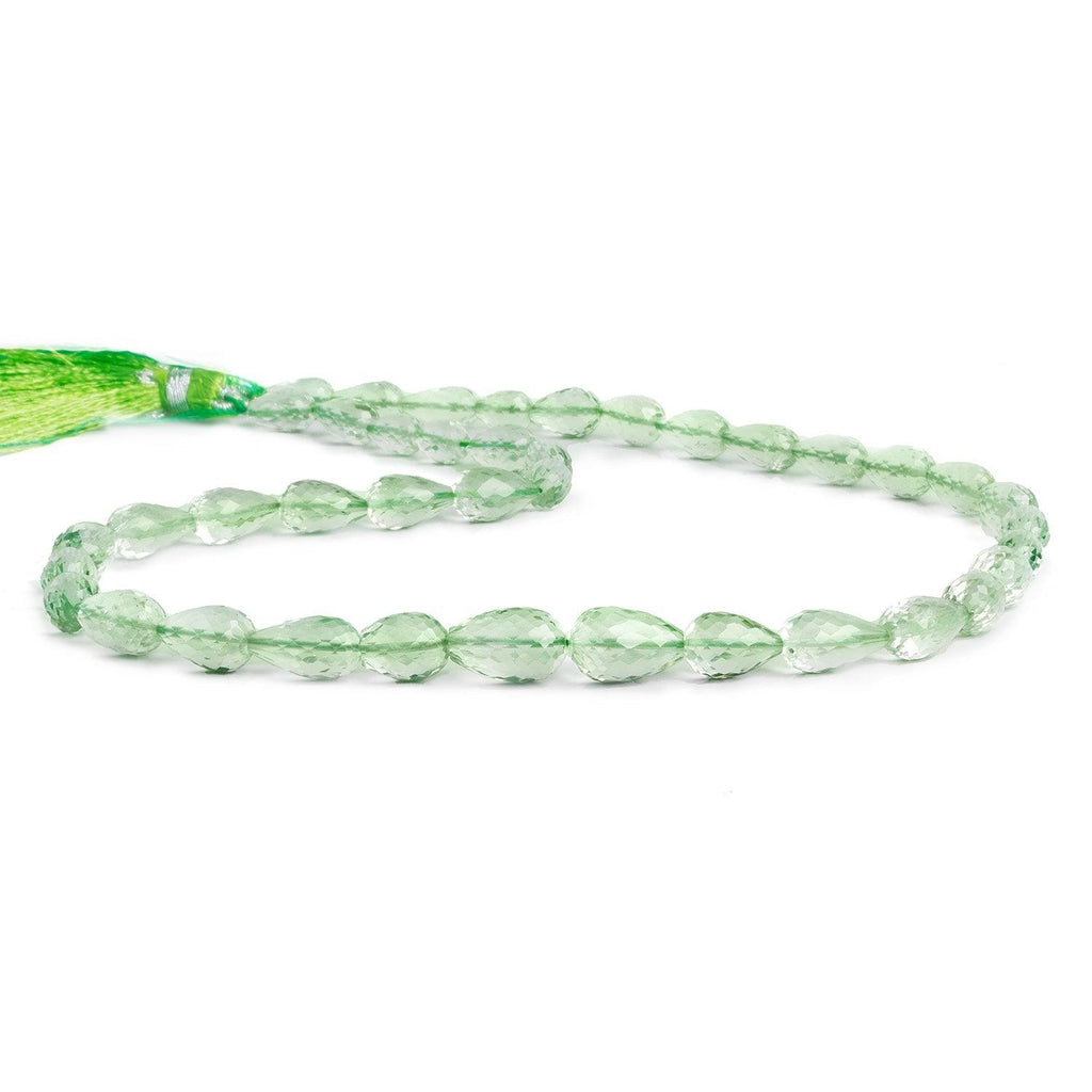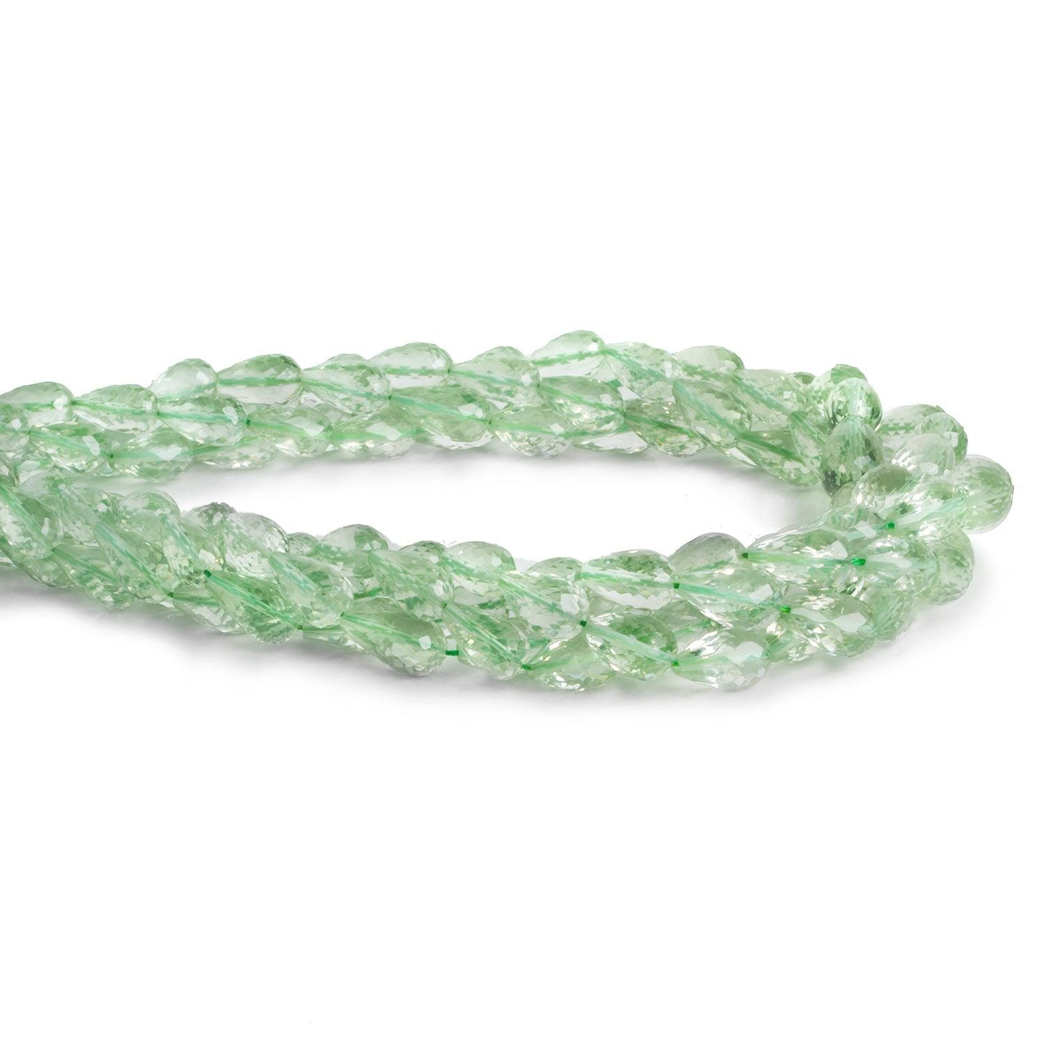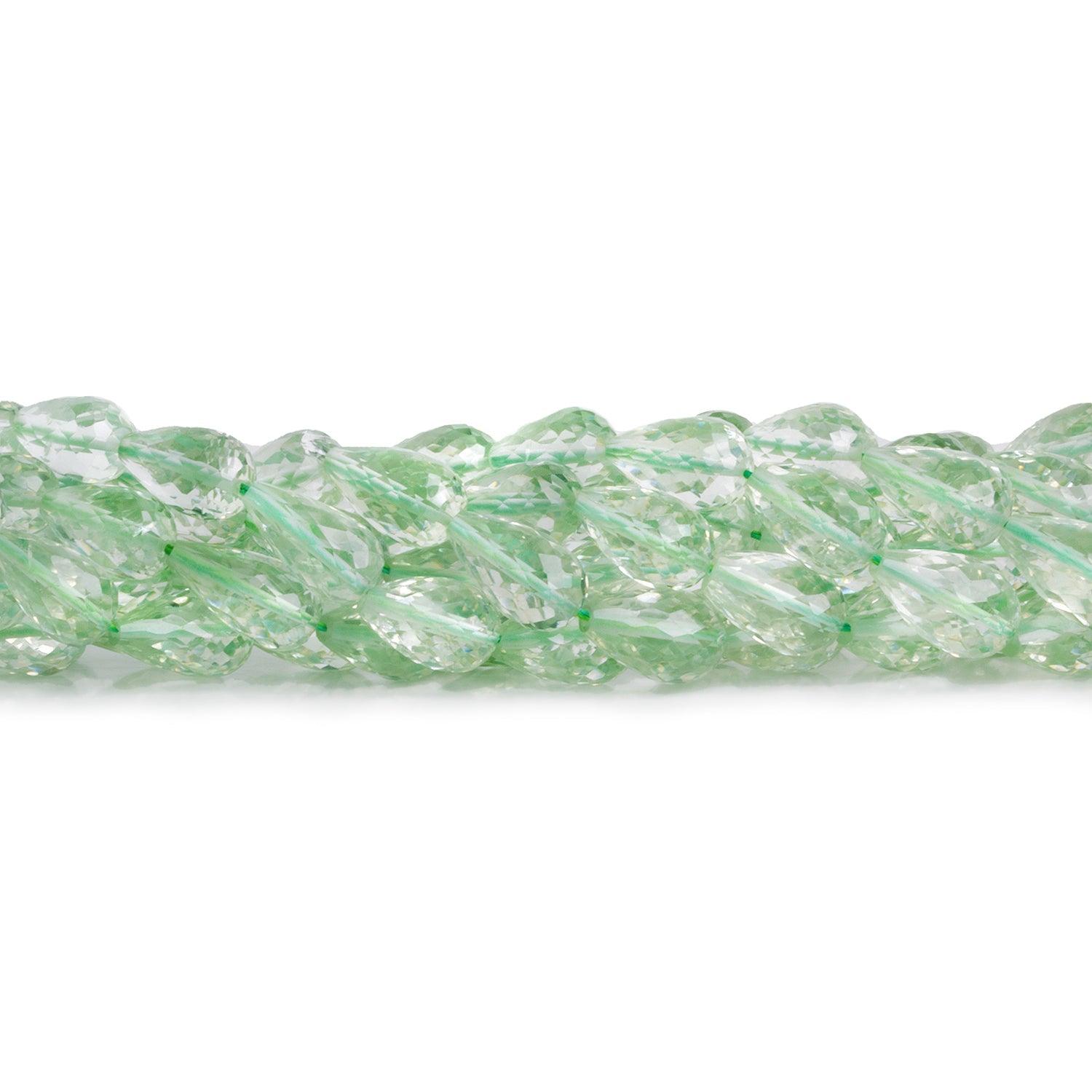 Beads range from about 10x6mm to 11x8mm on a graduated strand. These gorgeous faceted teardrop beads have a subtle green coloration across practically flawless translucent bodies. Expect some variation in size & shape within each strand.