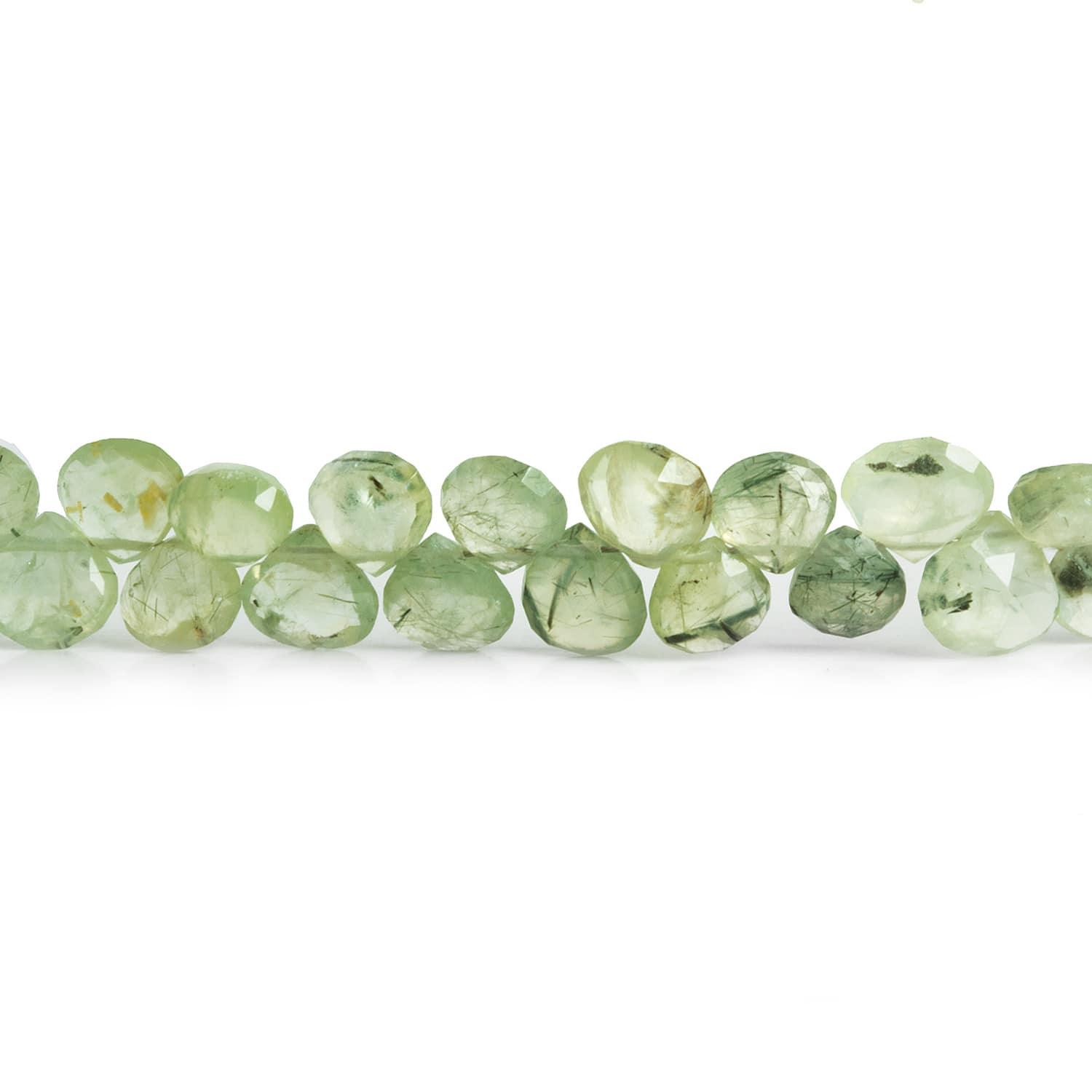 Beads measure 5mm to 6mm in diameter. These gorgeous little beads are filled with mossy colored dendrites that enhance the appearance of these light-green beauties. Bead size is somewhat graduated on the strand.