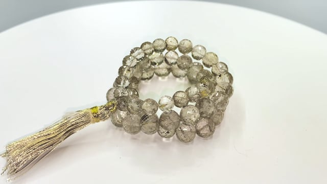 Rutilated Quartz Faceted Round Beads 16 inch 56 pieces