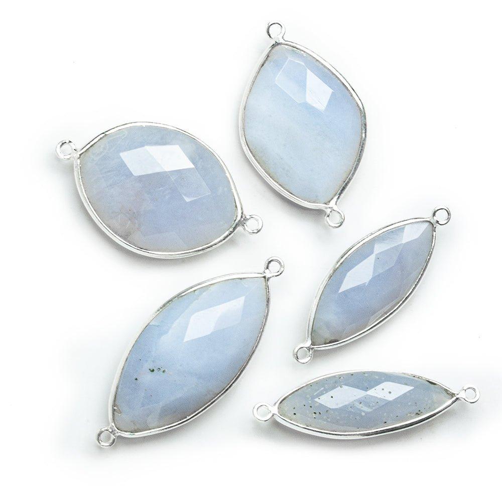 Silver Bezeled Turkish Chalcedony Connectors - Lot of 5