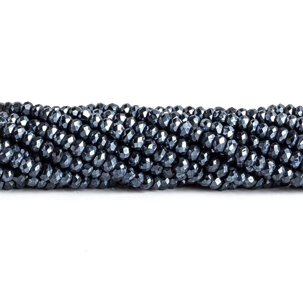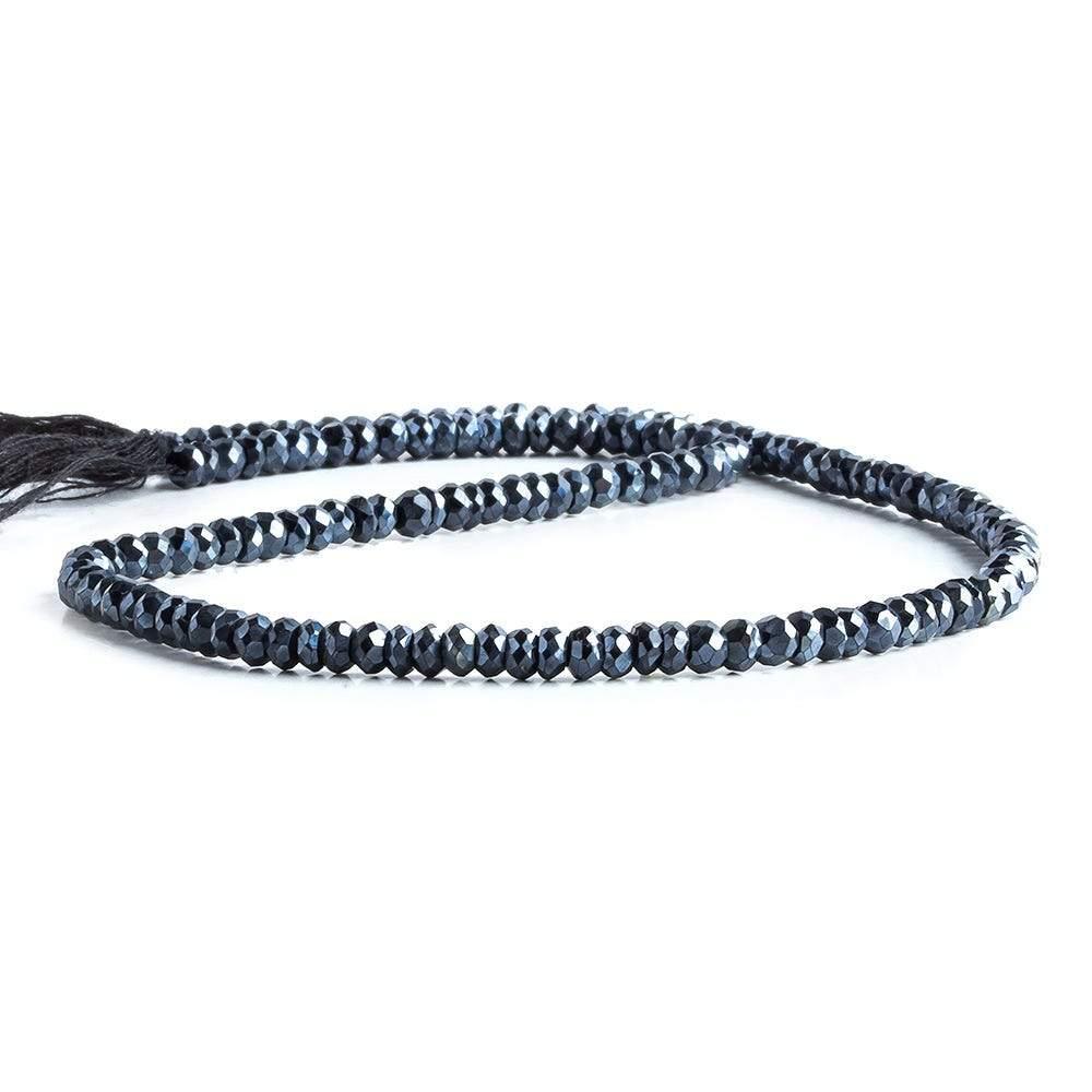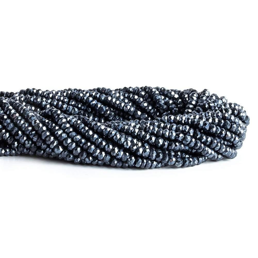 Step into the realm of mystery with our Mystic Coated Silver Black Spinel Faceted Rondelle Beads. These pieces have been coated with a mystical finish, creating a mesmerizing play of light and shadow across silvery bodies.
