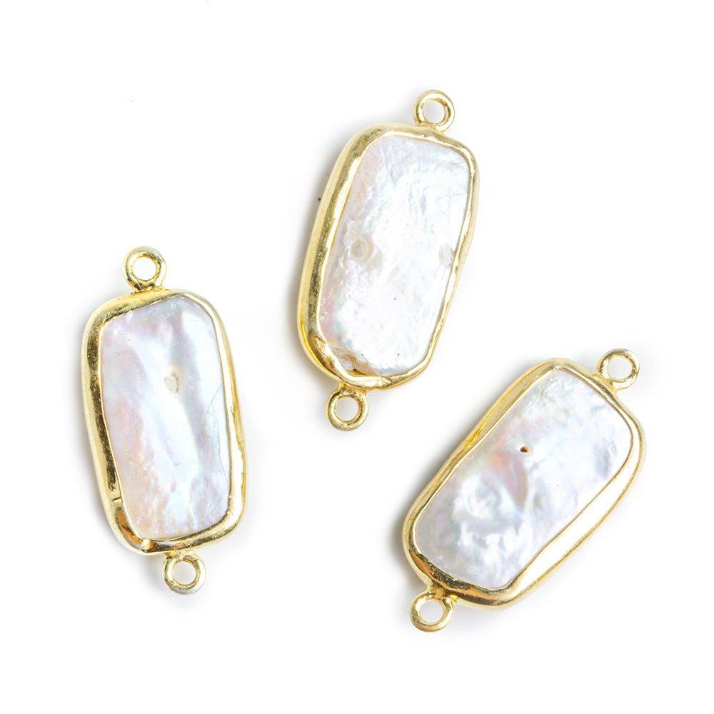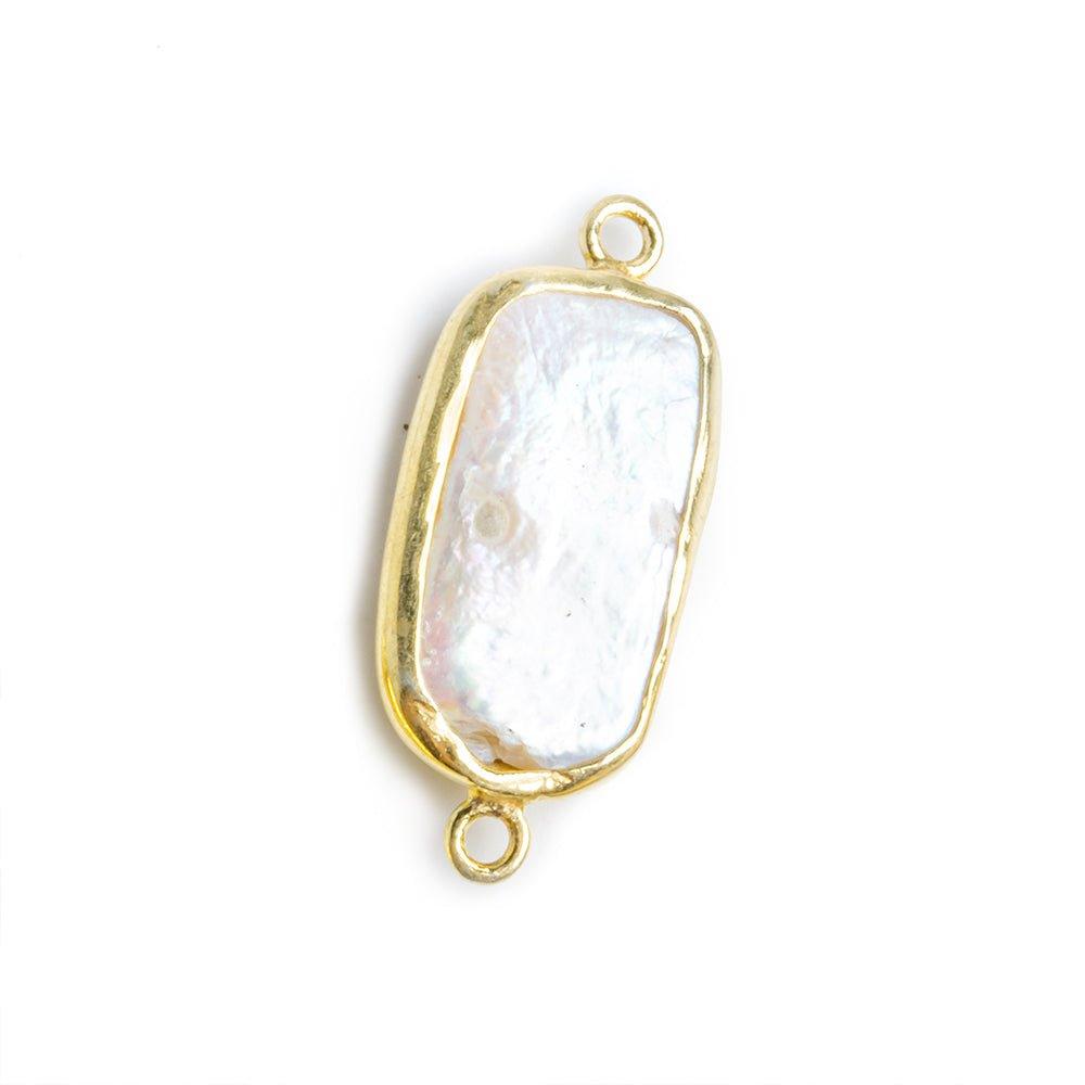 Vermeil Bezeled Cream Pearl Rectangle Connector Bead 1 Piece
