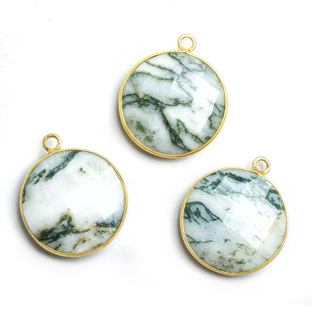 Vermeil Bezeled Moss Agate Faceted Coin Pendant 1 Piece