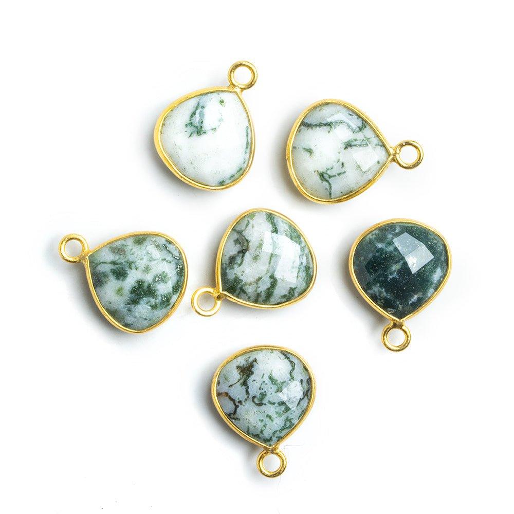 Vermeil Bezeled Moss Agate Faceted Heart Pendant 1 Piece